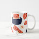 Patrón sin fisuras de sushi. La comida japonesa. Ilustracion de época. Poster de tipografía de colores divertidos, diseño de impresión de ropa. Diseño nórdico escandinavo para barra o interior o cubierta o textil o fondo. ¿Amo del sushi? Sumérjase en un patrón de colores divertidos del manjar favorito de Japón. ¡Ideal para disfrutar de un ambiente vintage en el sushi bar! ¡Satisface tus antojos de sushi con este patrón peculiar y sin fisuras! Mostrando coloridas delicias japonesas, le da un toque divertido a su espacio. fondo, patrón, ilustracion, comida, cocina, personalizado, restaurante, pescado, sonrisa, japón, sketch, sushi, doodle, tela, japonés, dibujo, cómic, chino, diversión, nutrición