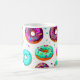 Yummy donuts con crema y con rociadores coloridos sobre el diseño de patrones de fondo blanco.