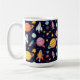 Patrón vibrante y sin fisuras mostrando cohetes, planetas y estrellas en un fondo de espacio oscuro. Perfecto para diseños educativos, decorativos o temáticos para niños relacionados con el universo y el espacio exterior.