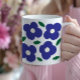 Taza De Café Patrón de flor retro del resumen azul negrita