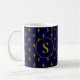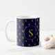 Taza De Café Patrón de flores de oro de Lis en azul real