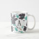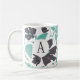 Un tazón de café monogramado a la moda con estampado floral gris y menta. ¡Una taza de café elegante que puedes personalizar! Este diseño tiene un hermoso patrón floral. Personalizar el tazón de café con tu primera. Diseño del Emporium de Jenn.