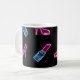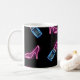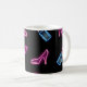Moda sin fisuras con íconos de neón de lápiz labial y zapatos de tacón altos sobre fondo negro. Girly, glamour, maquillaje, mujer, concepto de belleza. Ilustracion de época. El glamour de los neones, los tacones altos y el brillo de los labios. Iconos glamorosos: Lápiz de labios y tacones de neón deslumbran en un lienzo oscuro. ¡Brilla brillante! noche, talón, cartel, neón, niña, glamour, fondo, calzado, ilustracion, azul, patrón, mujer, decoración, papel, moda, oro, chica, belleza, línea, negro