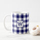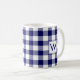 Taza De Café Patrón de tracción de Gingham blanco azul con mono