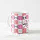 El clásico retro de la vintage inspira el arte moderno, este patrón de cuadrados geométricos rosa y negro se inspira en la época vintage y en el estilo de chekerboard, con un toque geométrico abstracto en un patrón estético para formar un elegante y elegante patrón decorativo compuesto por cuadrados geométricos y líneas en rosa y negro para dar un elegante y elegante patrón unisco. Este tazón de café puede fácilmente ser editable, y le permite personalizado sus iniciales en monograma y su nombre usando una caligrafía de escritura elegante rosa, y una tipografía negrita retro negra dentro de un cuadrado geométrico. Este diseño es para el mejor regalo de cumpleaños y vacaciones únicas presentes para navidades y festivos vacaciones de invierno de temporada.