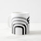 Diseño moderno de tazas de café con fondo neutro de bloques cuadrados blancos y negros. Muestra un patrón en blanco que se puede modificar cambiando la inicial.