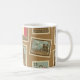 Taza De Café patrón sin fisuras con sellos postales sobre el t