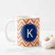 Patrón de chevron naranja monogramado con acento azul real. Añadir su monograma.