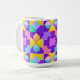 Obra de arte colorida y colorida con formas geométricas y patrones sobre un fondo morado. Representación artística de composición lúdica y dinámica, diseñada con tonos vivos y audaces para el atractivo estético.