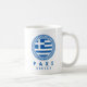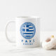 Paxi, tazón de café de Grecia con la bandera nacional de Grecia dentro de un diseño de círculo azul con un patrón clave griego. Esta taza es perfecta para que disfrutes tomando tu café mientras estás de vacaciones en Paxi, Grecia o si estás orgulloso de ser de Paxi.