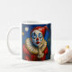 Payaso melancólico con maquillaje de lágrimas en la escena del carnaval a la luz de la luna en una taza de cerámica, ideal para coleccionistas, amantes del arte y fanáticos del circo. Añada un toque dramático a su bebebedero con esta impresionante jarra de cerámica con un ilustracion de payaso lloroso. Vestido con un atrevido disfraz rojo con un collar escarpado de oro y una gorra puntiaguda, la triste cara del payaso -pintada con un maquillaje de lágrimas azules y una nariz roja- se enfrenta a un cielo nocturno morboso iluminado por la luna y las brillantes lámparas de la calle. Este diseño captura la belleza intemporal de la nostalgia circense, mezclando emoción y arte de una manera única. Perfecto para coleccionistas, entusiastas del carnaval, o cualquiera que disfrute de diseños expresivos y ricos en historias en el uso diario.