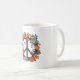 Esta encantadora taza cuenta con un clásico cartel de paz adornado con flores vibrantes y un equipo musical con notas que salen de ella con elegancia. Perfecto para añadir un toque retro a su rutina matutina de bebidas esta taza es un regalo para cualquiera que ame la paz, el amor y la música.