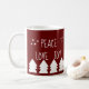 Bonito, "Peace Love Joy", guión Navidad borgoña taza de café.