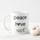 Taza De Café Peace Love Surf | Coastal Surfer Beach House