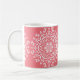 Esta mandala blanca se asienta sobre un fondo rosa melocotón. Los colores son florales y claros. Parte de la colección Losonieth Mandala.