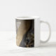 dulce y tímido bebé gato escondido detrás de un taburete de madera - el pequeño tigre gato está un poco asustado de la cámara