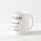 ¡Taza de café con "peligro! Correa negra necesitando el café!" logotipo