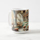 Perfecto regalo para los amantes del viaje y del café. La pintura acuática refleja el ambiente vibrante y culturalmente rico de una pequeña cafetería en Fez, Marruecos. En el interior, las paredes de mosaico son intrincadas y los tonos azules, verdes y blancos crean un ambiente tradicional y acogedor. Las pequeñas mesas de madera con mesitas ornamentadas y taburetes bajos con cojines están dispuestas de forma acogedora. Un mostrador rústico de madera alberga una cafetera tradicional de latón, una bandeja con vasos de té a la menta y una selección de pasteles marroquíes. El techo está adornado con lámparas que emiten una luz intrincada, lo que aumenta el calor del espacio. Las paredes están decoradas con cerámica tradicional marroquí y tejidos trenzados, lo que añade profundidad y textura. La luz del sol se filtra a través de una ventana abovedada, que ilumina los vivos colores y detalles intrincados, resumiendo la esencia de este encantador café marroquí.