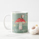 Taza De Café Pequeño hada encaramada sobre hongos y resplandeci