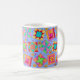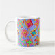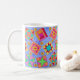 El arte quilt basado en el arte original presenta bloques de tejido patchwork favoritos y bloques únicos creados por Phyllis Dobbs con colores vibrantes y dinámicos colocados sobre un fondo perfilador. Muestra tu amor por el tejido con estos diseños mientras bebes tu bebida favorita en esta taza. Personalizable completo.