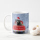 Taza De Café Perro de Labrador Negro en Nieve sentado en Navida