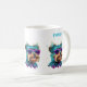 Guay Yorkie Dog con gafas de sol Diseño de tazón de café con colores brillantes en un efecto de pintura y puedes personalizar el nombre de tu perro.