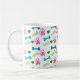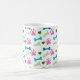 ¿Estás buscando un regalo para el amante del perro en tu vida? Les encantará esta linda taza que tiene un patrón dibujado a mano de garras de perro rosadas, huesos azules, corazones verdes y la palabra tejida en verde.
