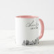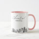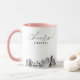 Taza de café con puntos de referencia modernos de Sacramento. El diseño muestra un boceto impresionante con la capacidad de personalizar con su nombre o los nombres de sus damas de honor, invitados u otros. Actualice fácilmente el tamaño y el color de la taza a su gusto.