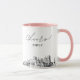 Taza de café para boda de Indianapolis. El diseño muestra un boceto impresionante de la silueta de la ciudad con la capacidad de personalizar con su nombre o los nombres de sus damas de honor, invitados u otros. Actualice fácilmente el tamaño y el color de la taza a su gusto.