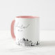Taza de café para boda en Albuquerque. El diseño muestra un boceto impresionante de la silueta de la ciudad con la capacidad de personalizar con tu nombre o los nombres de tus damas de honor, invitados u otros. Actualiza fácilmente el tamaño y el color de la taza a tu gusto.