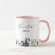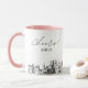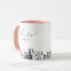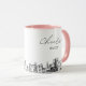 Taza de café para boda en Columbus. El diseño muestra un boceto impresionante de la silueta urbana con la capacidad de personalizar con tu nombre o los nombres de tus damas de honor, invitados u otros. Actualice fácilmente el tamaño y el color de la taza a su gusto.