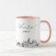 Taza de café para boda en Denver. El diseño muestra un boceto impresionante de la silueta de la ciudad con la capacidad de personalizar con su nombre o los nombres de sus damas de honor, invitados o demás. Actualice fácilmente el tamaño y el color de la taza a su gusto.