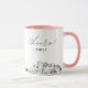 Taza de café para boda en Honolulu. El diseño muestra un boceto impresionante de la silueta urbana con la capacidad de personalizar con tu nombre o los nombres de tus damas de honor, invitados u otros. Actualice fácilmente el tamaño y el color de la taza a su gusto.