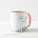 Taza de café personalizada para boda en Memphis. El diseño muestra un boceto impresionante con la capacidad de personalizar con su nombre o los nombres de sus damas de honor, invitados u otros. Actualice fácilmente el tamaño y el color de la taza a su gusto.