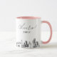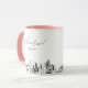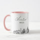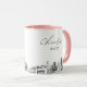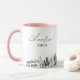 Taza de café para boda en Omaha. El diseño muestra un boceto impresionante de la silueta de la ciudad con la posibilidad de personalizar con tu nombre o los nombres de tus damas de honor, invitados u otros. Actualice fácilmente el tamaño y el color de la taza a su gusto.