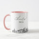Taza de café para boda en Salt Lake City. El diseño muestra un boceto impresionante del horizonte con la capacidad de personalizar con tu nombre o los nombres de tus damas de honor, invitados u otros. Actualice fácilmente el tamaño y el color de la taza a su gusto.