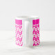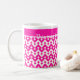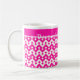 Un elegante tazón de café blanco para personalizar, con un patrón de formas de chevron decorativas en color rosa dulce y blanco. Parte de la gama "Candy Floss" de Posh & Painterly.
