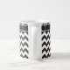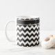 Un Coffee Mug elegante para que usted lo personalize, con un patrón de chevron en zigzags blancos y negros de tendencia. Si prefiere no añadir ningún texto a su Mug, simplemente elimine el texto y cambie el patrón hacia arriba hasta que la banda de texto desaparezca, usando el botón personalizar.