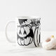 ¡Este diseño blanco y negro da un poco de miedo mientras sigue siendo lindo! Las calabazas y los murciélagos son el principal atractivo del ojo, pero también se pueden ver las telarañas. Un gran toque para hacer que tu hogar sea un poco más espeluznante. Un gran regalo para el amante de Halloween que puedas conocer.