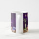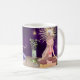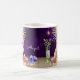 Este bonito tazón de café tiene un chica meditando en una alfombra de yoga rodeada de cristales, velas y afortunado bambú en una hermosa sala con una pared violeta profunda, suelo de baldosa y obras de arte doradas. ¡Personaliza con un nombre!