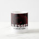 La personalizado Floral Red Rose BENDIÓ Coffee Mug, con la palabra BENDICADA en tipografía BLANCA y EN EL NOMBRE DE JESÚS en gris. Todo el texto es PERSONALIZABLE, por lo que puede crear su propio texto, agregar su referencia de secuencia de comandos favorita o agregar su nombre. Esta taza de café bendita inspiradora también sería un gran regalo para Navidades, cumpleaños, día de la madre, día del padre, etc. Existen otras versiones similares (incluyendo versiones simples y purpurinas).