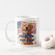 Prepárate para sacudir tu cola con esta atractiva taza! Presenta un alegre personalizado Golden Retriever con una estrella bandana roja, blanca y azul, ambientada en un atrevido fondo de bandera estadounidense. El texto "Patriotic Pup Brew" está escrito en una letra marina juguetona con un contorno rojo, bellamente contrastando con las estrellas diseminadas festivas en un fondo crema. Este diseño es perfecto para todo aquel que ame a los perros, aprecia temas patrióticos y disfruta de un toque de fantasía en su vida diaria.