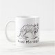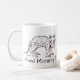 Dibujo personalizado de un animal ficticio ("Pollos" por la artista Emily Filos) con el texto "¿Buenos días?" impreso debajo. Imagen repetida en ambos lados. Imagen de 2010 por Emily E. Filos.