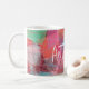 Guay girly bonito trendy mug con un patrón de diseño abstracto inspirado en mi exclusivo bordado textil contemporáneo. Colorido, vibrante, brillante y brillante esquema de colores vivos, tonos de rojo, rosa, verde, azul, gris. Feminine, para usted o como un regalo creativo, creativo y útil para ella.Puede ser personalizado personalizar con un nombre por ejemplo o sólo con letras iniciales, monogramado o incluso borrar el texto si no lo necesita. Atractiva, seguramente perceptible y admirada idea de regalo para varias ocasiones o celebraciones, fiesta de San Valentín, vacaciones de Navidades, cumpleaños, aniversario.