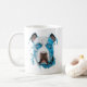 White Pitbull con ojos azules AI café taza de amante de los perros de arte con texto que dice Pitbull Dad pero puedes cambiarlo para decir lo que quieras.