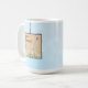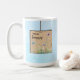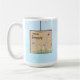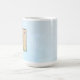 Personalizado Tea Bag Flavor Mug. Dulce verano con bolso de té impreso con texto de Personalizable para añadir un sabor especial. Por ejemplo, "Sabor de: Verano" o añade tu nombre: "Sabor de: Charlotte" o "El favorito de Charlotte". Perfecto para cualquier amante del té. Aquí en un fondo de bokeh azul y claro.