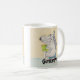 Un guiso Personalizado saboreando delicadamente té de un té verde y sosteniendo la salsa, mientras se sienta en un taburete con cojines azules de mimbre. La leyenda dice: "Guardias", para esas almas desafortunadas que tienen que impedir que la gente pase a sus jefes.