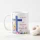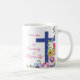 Una buena monja pronto recordará setenta años de experiencias y trabajo duro con este regalo, recuerdo, regalo o fiesta esencial. Háganle saber lo importante que es su generoso trabajo cristiano en su 70° Aniversario de la Vida Religiosa. Una gran cruz azul junto a flores de colores suaves, todo blanco.