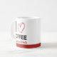 This personalized coffee mug features the phrase “I ♥ Coffee” with bold lettering filled with a stylish coffee bean pattern. Add a custom name to create a unique mug that celebrates your love for coffee.