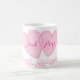 This elegant personalized mug features two overlapping pink hearts with custom names, paired with a delicate floral border for a soft, romantic touch. Perfect for couples, anniversaries, Valentine’s Day, weddings, or just because.
